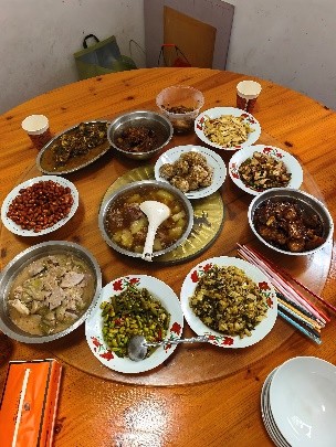 山の中は蚊が多いので窓を開けられないです。エアコンがないため、部屋は蒸し暑かったです。夜明けには犬の鳴き声と、野菜を売る声、村民の会話声がしました。村民は早起きが習慣で、私が7時前に起きても公公と婆婆が既に朝ご飯を食べ終わりました。主人の話によりますと、昔から村民が“遊飯”(ゆうはん)の習慣があります。碗に料理を盛って、庭に立ったり、歩きながら話しをしたりして食事をします。主人の実家にいると、私も食卓にひとりで座って食べるよりも、この自由な食べ方が好きです。食事を済んでから、いよいよ出発の時間になりました。