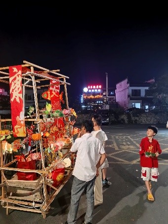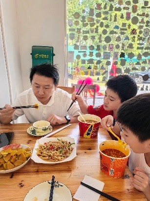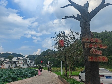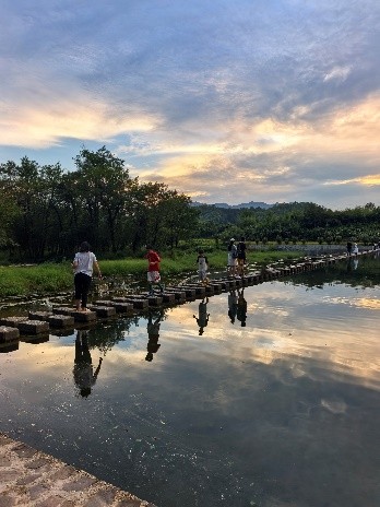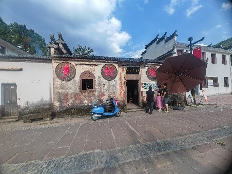 王総の母と奥さんは沢山の料理を作ってもてなしてくれました。王総ご夫婦にも二人の男の子がいます。食事後、王総の母と奥さんが食卓を片付けて、四人の子供はそれぞれスマホやタブレットを持って二階に上がり、エアコンをつけながら各自に遊びをして、王総が私達を黄村のことを案内くれました。ご紹介により、黄村には1200年に及び歴史があり、国家級の歴史文化名村、中国伝統的村落などの称号があり、歴史上、12人の進士(しんし)が養育したことから“進士村”の美名を享有しています。この村は観光業を発展させて、有名人も村に来て娯楽番組を撮影しました。村落は“ひょうたん型”をしており、数十棟の古民家が現存しています。“黄村進士第”や“黄村小学校”はいずれも重点文化財保護単位になっています。私たちが見学した時、改修工事は活発に行われており、多くの観光客が豆腐作り体験などをしていました。馬小屋を改築してカフェに観光客が溢れて、人の世話を必要としない先進な民宿や村歴史博物館もとても格調が高いです。王総の家に戻り、お茶を暫く飲み、政府が400万元以上を投資して村のために建てた“水庫”(貯水池)も見に行きました。王総の母はお話し好きで、意志が強い方です。ご自身の家を民宿に改装し、観光客を招く計画をしています。王総も民宿の前にプールを作り、村に特色ある民宿にしたいと思っています。王総のご家庭は、郷村文旅ブームに乗ることができたなと感慨します。
