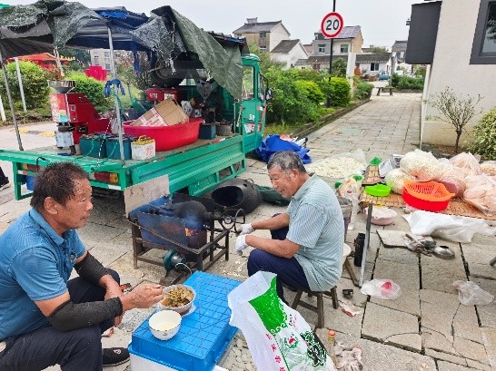 前日、煙台の実家から昆山に戻ったのが深夜だったこともあり、グスッリ眠って起きたら午後1時も過ぎました。江蘇省溧陽市のある村に通過していたところ、村の入口にはサトウキビを伐採し、生搾りサトウキビジュースを売る屋台と、昔ながらの製法でポップコーンを作る流動小商販が見えました。私も子供たちもサトウキビ園は初めて見たので、車を止めると、主人が2人の子供を連れて畑へ入り、サトウキビの伐採体験をしました。この時期のサトウキビは甘みがまだ薄かったですが、自分で選んで伐採する新鮮な体験が子供たちを喜ばせました。小村を一周回ると、全村の計画が整然として立派で、村民の大半は二階建ての家に住んでいました。麻将をする人々が集まっていてましたが、軽食店や商店が見当たりませんでした。子供たちがカップ麺を食べたがるため、我たちは旅を続けました。