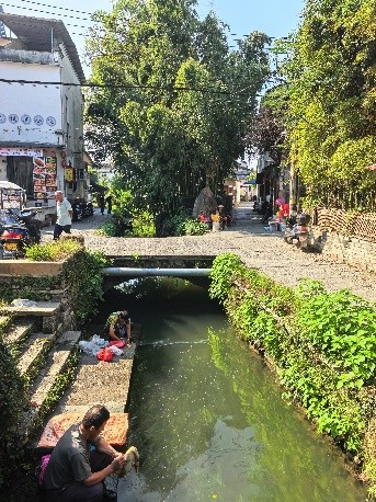 翌日の朝6時過ぎ、主人は早起きしてバルコニーでのんびりタバコを吸いながらスマホを見ていました。朝の散歩やジョギングをする人々は川沿いを歩き、景色を楽しんでいました。蔡村は“中華モウソウチク第一町”と呼ばれ、自然環境が良いです。滞在している民宿はメインストリートの中心に位置し、民宿を出るとにぎやかな朝市がありました。地元の小売業者はカゴに野菜、肉、大豆製品などを並べて売っていました。私たちはプラスチック素材で編まれたバスケットを40元で買い、ゆっくり朝市を巡り、バスケットはすぐにいっぱいになりました。観光業が発展しているせいか、この村の物価は昆山とほぼ同じと感じました。