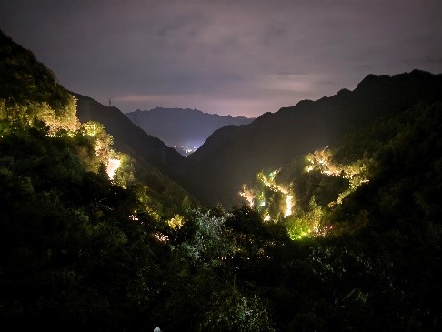 主人はお酒を飲んだので、運転は私に替わりました。私はMTを運転していましたが、主人の車はATで、幸いにも山間部の道路は平坦で、車も少なかったです。緊張感があり、音楽を聴ける余裕がなくでも、安全に坂道の入口まで運転することができました。坂道の運転はやはり主人に任せます。木梨硔の地勢が高いです。険しくて石が多い小道に沿って車で山腰にある駐車場に行って、さらに徒歩約20分を使い、800段階段を登ってから着きます。休暇日のせいか、山の麓から車が一台つぎに山側に沿って駐車されており、反対側の道幅は一台の車がぎりぎりに通れます。私は度胸が小さくて途中で何度も主人に“車を止まって歩いて行こう”と催促しました。カーブのところに来ると、道が渋滞して前に進めず、Uターンもできませんでした。3、4台の車がここで半時間以上試して、ようやくギリギリUターンのスペースを作り、主人といち早くもここを離れました。山の麓に着いた時は既に夜が深くなっていました。