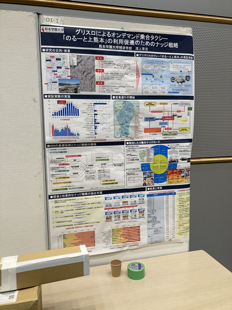 おそらくはそのタイトルに🌟ワードが多くあるのが理由と思われますが,申請をした多くの発表中から事務局に推薦されて,口頭発表の機会を与えられました.熊大定年退職以後はろくな研究もしていないし,自信のある研究以外は学会での発表はひかえていたのですが,上記の3つめの質問に対する回答の論拠にもなる「のるーと上熊本の利用促進のためのナッジ戦略の有用性」を,独自に収集したデータとモデル分析によって説明した口頭発表を行いました.聴衆に理解されたか分かりませんが,谷口綾子筑波大教授からは鋭い質問と研究スタイルに対する共感をいただきました.研究半ばなので,今後の継続的に研究を推進していこうと思います.