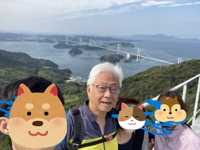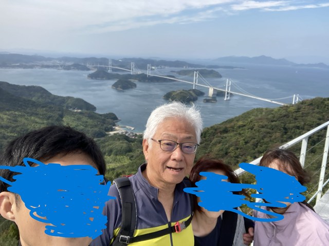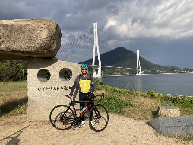 自分の自転車でもう一度,しまなみ海道を走りたいという気持ちが再挑戦の動機です.今回は松山在住の次男と一緒に走りました.妻と次男のお嫁さんは車でサポート.着替えなどは宿まで運んでもらえたため,楽なライドとなりました.