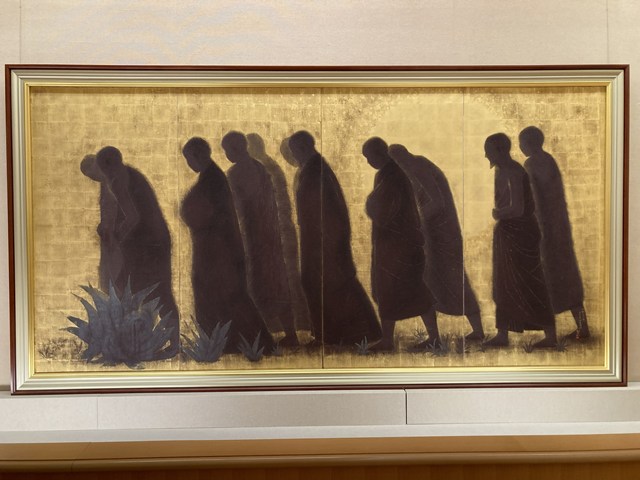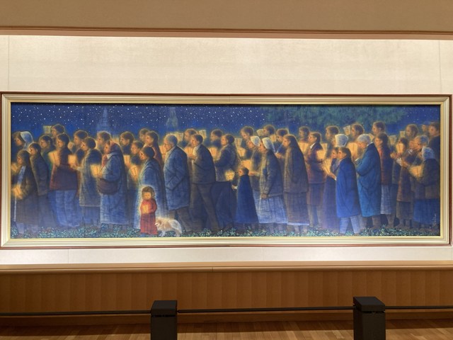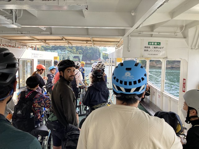 翌11/1(土)は9:00に出発予定で,前日から自転車は組み立てて準備万端,即スタートのつもりでいたのですが,ホテルの朝食が素晴らしく美味しくてゆったりしてしまったり,私がリーダーでライドするのは初めてで手順通り進まなかったりなどもあって,結局は向島への渡船は9:30ころになりました.向島に降り立ち,スタートラインに着いたときには2年前のあのワクワク感と緊張感と同じ気持ちになりました.ライド以外のこの日の目的は,前回のライドでは通過した平山郁夫美術館です.シルクロードをモチーフとした日本画は吸い込まれるようで素晴らしかった.2年間の間に価格,質とも悪化したのか,近くで食べた昼食の穴子丼は名物と言いながら今イチで,コスパも良くなかったのは残念.勿論,多々羅大橋を背景にサイクリストの聖地でもパチリ.